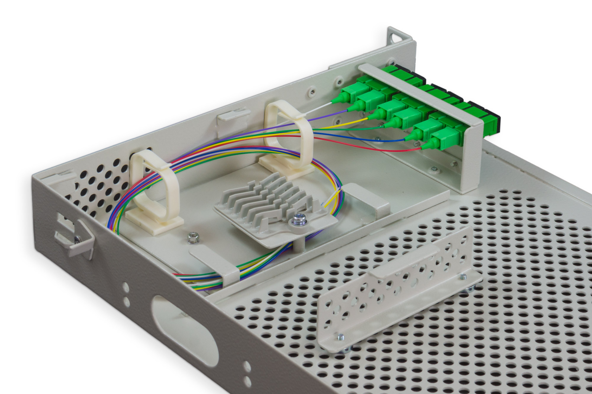 L’ODF12A est un tiroir optique 12fo, permettant de recevoir un équipement actif, il est idéal pour le raccordement de clients professionnels. Dans sa version 6A6P, il dispose d’une capacité de 6 fibres.